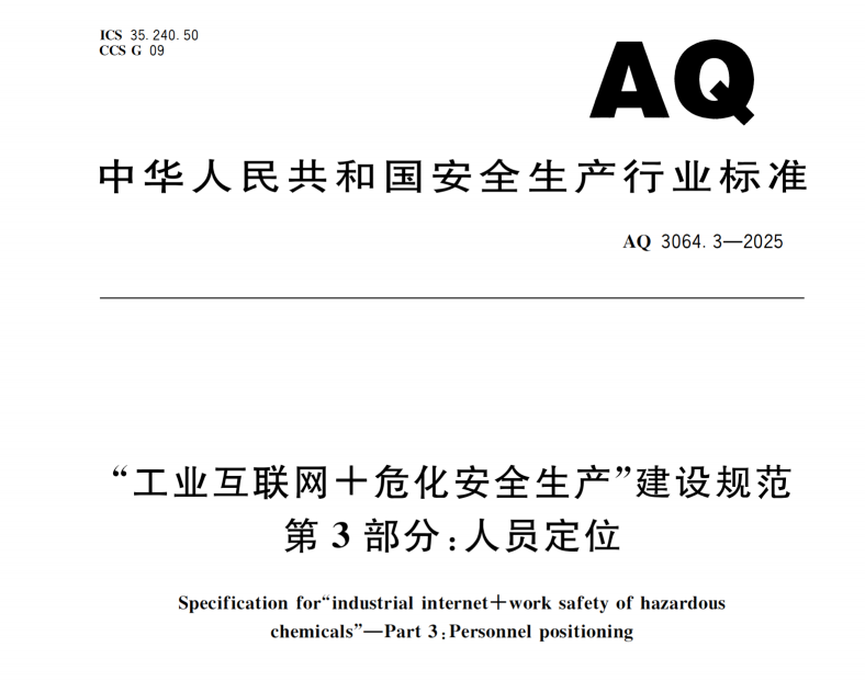 2026年1月4日,應(yīng)急管理部正式發(fā)布《“工業(yè)互聯(lián)網(wǎng)+?;踩a(chǎn)”建設(shè)規(guī)范 第3部分:人員定位》(AQ 3064.3-2025),并將于同年7月1日起強(qiáng)制執(zhí)行。這一標(biāo)準(zhǔn)的出臺(tái),是?;踩a(chǎn)領(lǐng)域從“事后追溯”向“事前防控”轉(zhuǎn)型的關(guān)鍵舉措。