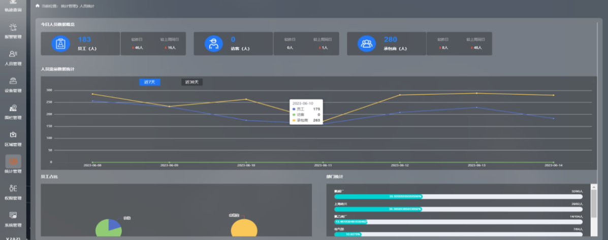 系統(tǒng)具備強大的數(shù)據(jù)統(tǒng)計分析能力,能夠對各類定位數(shù)據(jù)以及其他相關業(yè)務數(shù)據(jù)進行實時統(tǒng)計和深入分析。通過全面的數(shù)據(jù)報表和可視化工具,系統(tǒng)以圖表的形式展示各區(qū)域人員分布、報警信息、人員工作時長、車輛行駛里程等關鍵數(shù)據(jù)。例如,在報警信息圖表中,能夠直觀地了解各類報警事件的發(fā)生頻率和分布情況。這些數(shù)據(jù)統(tǒng)計分析結果,為隧道施工管理決策提供了有力的數(shù)據(jù)支持,幫助管理者深入了解施工過程中的實際情況,發(fā)現(xiàn)潛在問題,從而制定更加科學、合理的管理策略,提高施工效率和安全性。