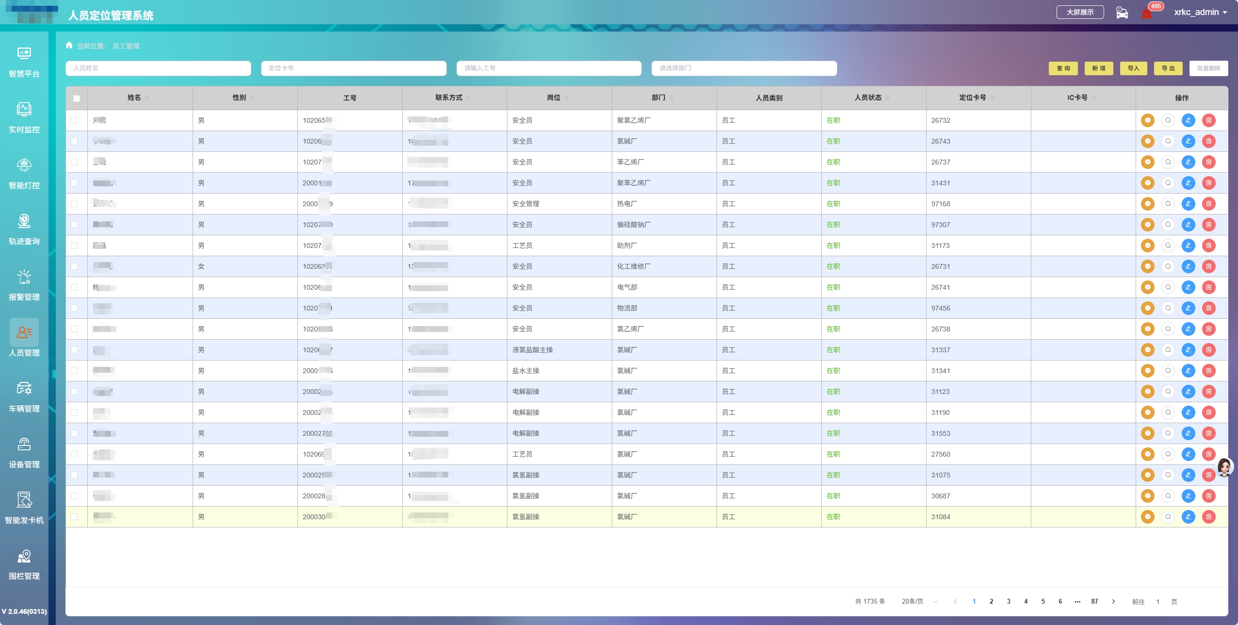 借助管理平臺,農(nóng)藥廠的管理人員能在廠區(qū)電子地圖上,實時、精準(zhǔn)地追蹤每位作業(yè)人員的位置。不管是在繁忙的生產(chǎn)車間,還是在開闊的室外存儲區(qū),人員的位置變化都能清晰可見。這有助于管理人員及時掌握人員分布狀況,合理調(diào)配人力,提升生產(chǎn)效率。