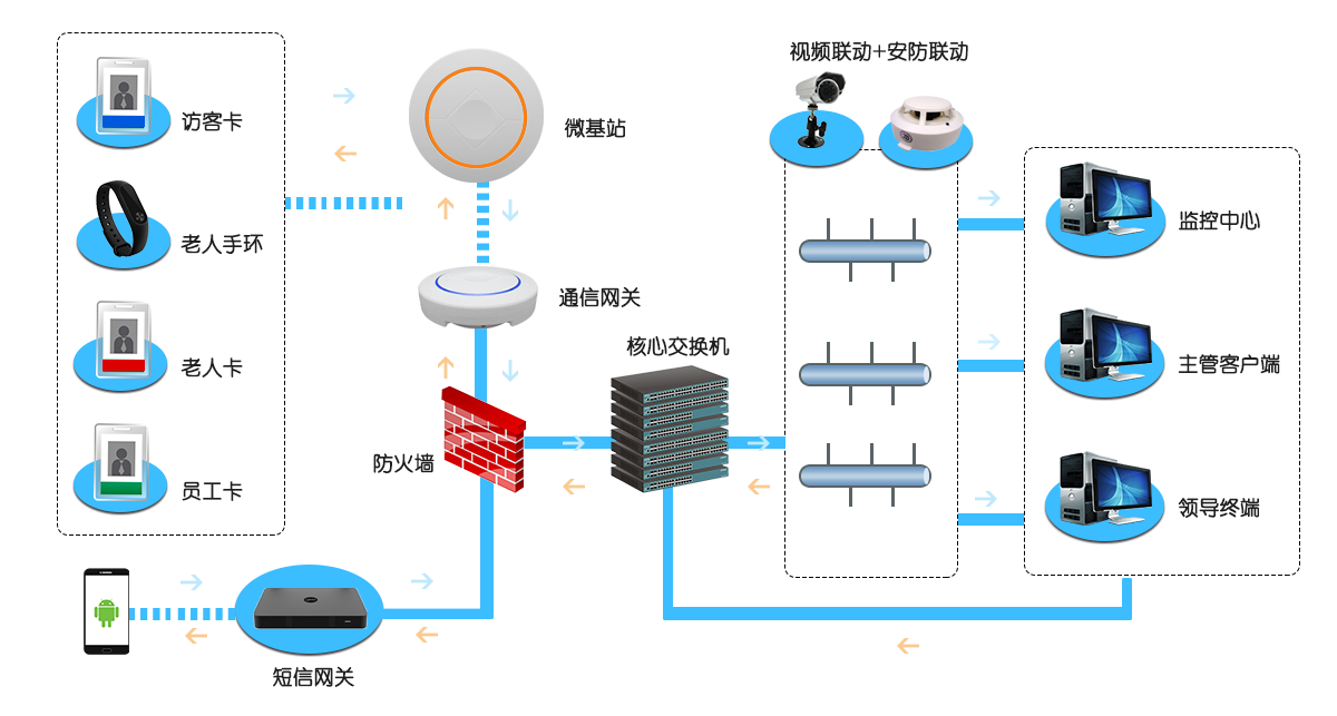 養(yǎng)老院人員定位系統(tǒng)應(yīng)反應(yīng)養(yǎng)老公寓情況、增加老人安全防范級別、加強(qiáng)安全保障措施,部署物聯(lián)網(wǎng)設(shè)備及配套集成平臺軟件,實(shí)時(shí)定位人員信息及時(shí)反應(yīng)老人救助行為,實(shí)現(xiàn)與視頻、門禁一卡通等自動(dòng)化監(jiān)管設(shè)施聯(lián)合動(dòng)作,提高應(yīng)急響應(yīng)速度和事件的處置速度,有效提高養(yǎng)老公寓的管理水平和管理效率,同時(shí)為老年公寓運(yùn)營管理提供可參考的大數(shù)據(jù)信息,便于養(yǎng)老公寓合理分配資源,為老人提供更加的服務(wù)。