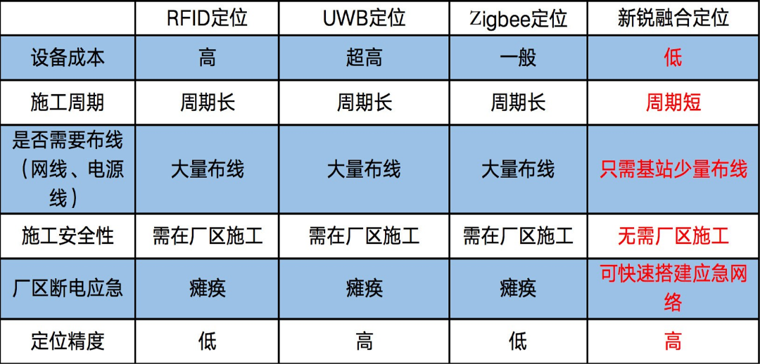 除了以上提及的四種常見技術(shù),目前市場上還有幾十甚至上百種定位技術(shù),比如說,新銳融合定位技術(shù)。新銳融合定位技術(shù)是由新銳科創(chuàng)依托行業(yè)優(yōu)秀的無線通訊專家和數(shù)據(jù)安全開發(fā)團隊,融合物聯(lián)網(wǎng)、云計算、大數(shù)據(jù)、算法引擎等先進技術(shù)而來。新銳融合定位技術(shù)設(shè)備成本低,施工周期短,只需基站少量布線,不需要在廠房進行弱電施工;即便遇到如燃燒、爆炸類事故導(dǎo)致廠區(qū)斷電等突發(fā)事故,仍可快速搭建應(yīng)急網(wǎng)絡(luò),進行求救信息響應(yīng);更為重要的是,新銳融合定位技術(shù)定位精度非常高,用戶體驗非常好。