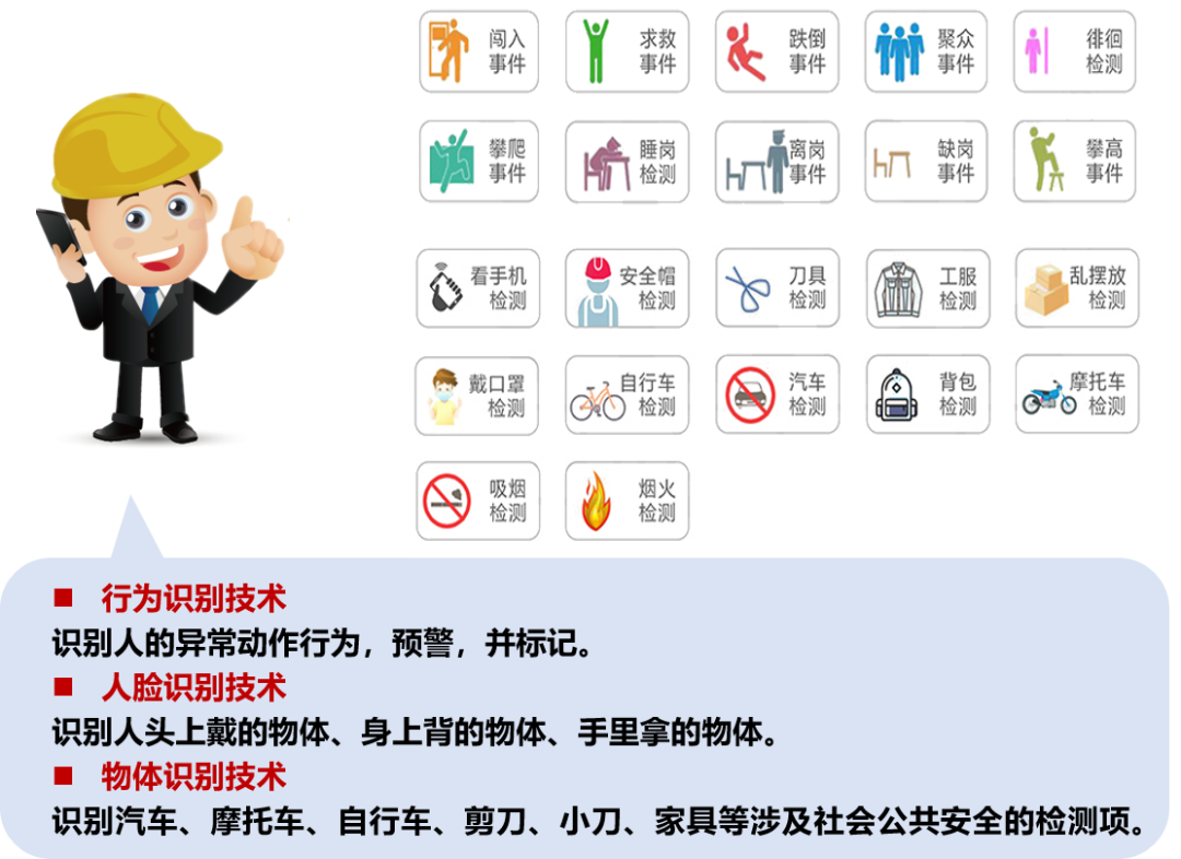新銳科創(chuàng)智能視頻AI識(shí)別系統(tǒng)利用計(jì)算機(jī)圖像視覺(jué)分析技術(shù)理解視頻畫(huà)面內(nèi)容,系統(tǒng)將圖像處理、模式識(shí)別、智能分析以及信號(hào)處理等先進(jìn)算法技術(shù)融入多元化場(chǎng)景中,通過(guò)算法優(yōu)化分離場(chǎng)景背景與目標(biāo),從海量圖像中自動(dòng)發(fā)現(xiàn)、分析人的異常行為并立即進(jìn)行處理,實(shí)現(xiàn)包括入侵檢測(cè)、圍墻翻越檢測(cè)、群體事件檢測(cè)、離崗檢測(cè)等行為識(shí)別,通過(guò)運(yùn)用人工智能的方式來(lái)提升監(jiān)控中心管理的智能化和便捷度,為智能安防提供一站式解決方案。