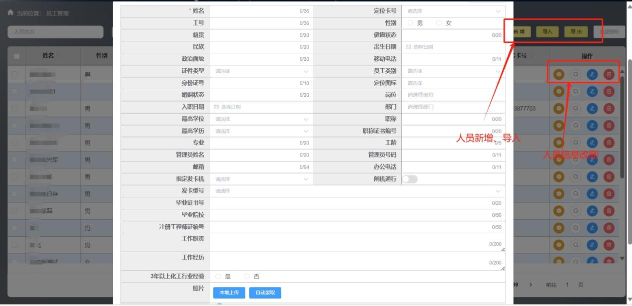新銳科創(chuàng)的人員定位系統(tǒng)構(gòu)建了詳盡且靈活的人員基本信息管理體系。系統(tǒng)能夠全面記錄并管理每一位員工的姓名、年齡、單位名稱(chēng)、工種、培訓(xùn)情況等關(guān)鍵信息。