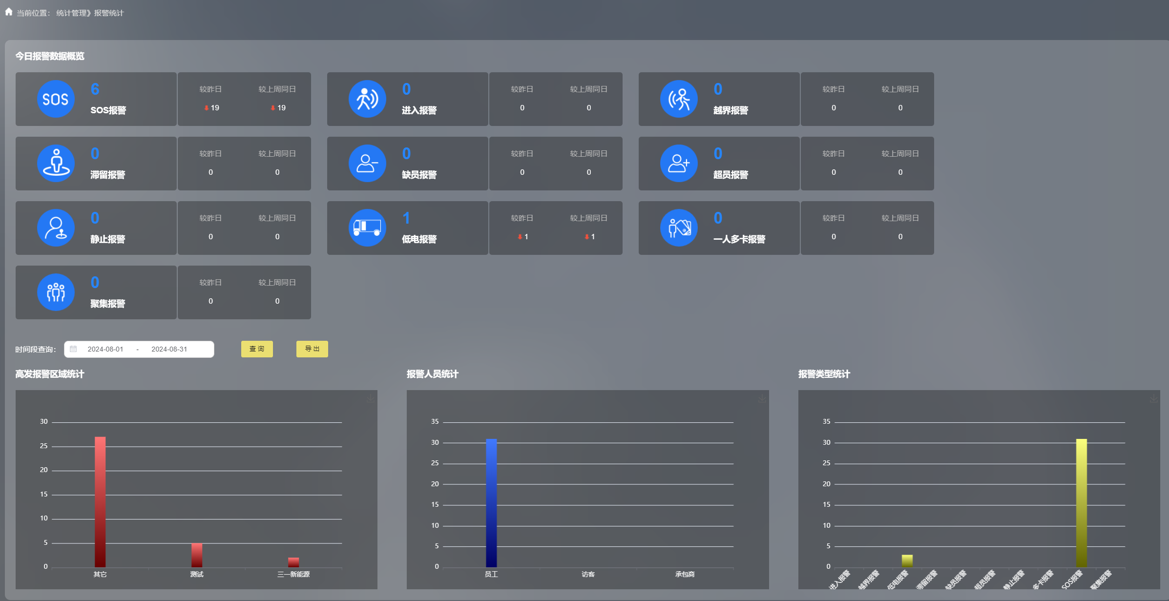 系統(tǒng)提供全面的數(shù)據(jù)報(bào)表和可視化工具,以表格、熱力圖等形式展示各區(qū)域人員分布及報(bào)警信息等關(guān)鍵數(shù)據(jù)。