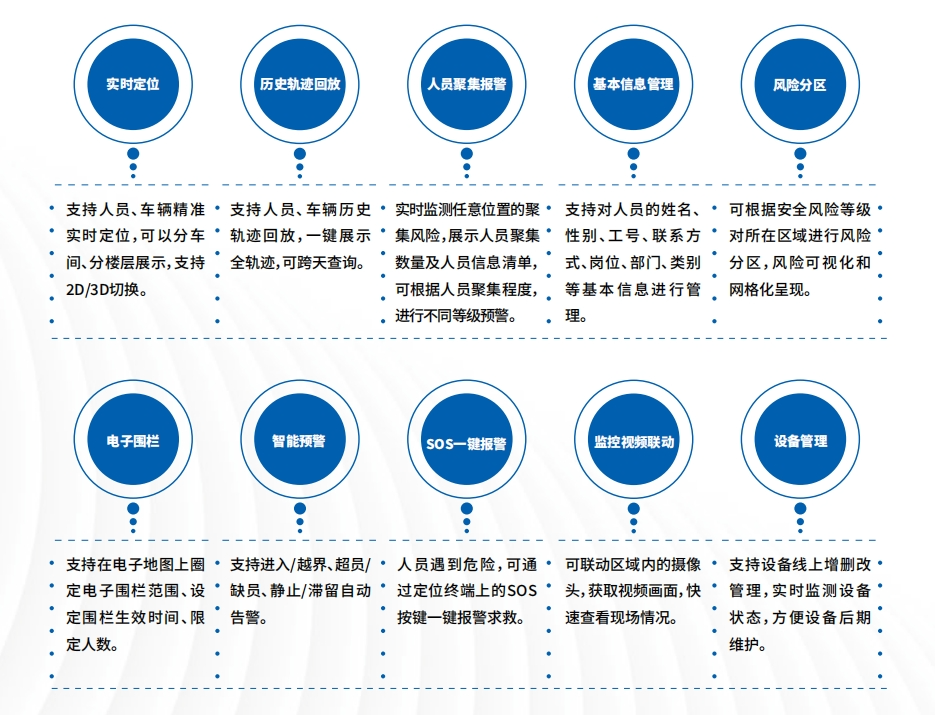 人員定位系統(tǒng)的實時跟蹤定位、歷史軌跡追溯、電子圍欄管理、智能預(yù)警管理等功能可以實時獲取人員相關(guān)信息,對作業(yè)人員尤其是高風(fēng)險作業(yè)人員實現(xiàn)實時安全監(jiān)控以及風(fēng)險管控,對可能出現(xiàn)的風(fēng)險提前預(yù)防,對突發(fā)的險情及時救援,在降低安全風(fēng)險的同時提高企業(yè)安全生產(chǎn)水平。